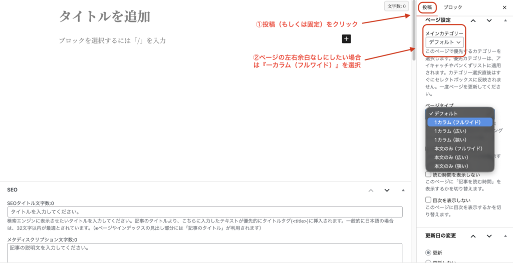 ページ左右余白の消し方 未分類 2026.02.09 テーマ『Coccon』の場合:ページのテンプレートを「全幅」に変更 固定ページ、もしくは投稿ページの編集画面で右側の設定メニュー(ページの設定)を開く。 「ページ属性」もしくは「テンプレート」項目から「全幅(フル幅)」または**「コンテナ全幅」**のようなテンプレートを選択。 ※テーマによって「デフォルトテンプレート」「コンテンツのみ」「1カラム」などの選択肢が出ることがあります。 「コンテンツのみ」や「1カラム(サイドバーなし)」があれば選択して保存。